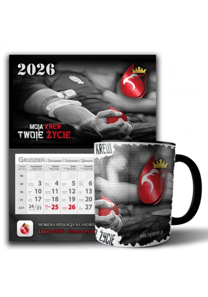 "Zestaw HDK 2026 cywil" który świetnie wygląda wzbogacając nasze codzienne życie tak w domu jak i w pracy. Został on stworzony z grafiką z żołnierzem oddającym krew.